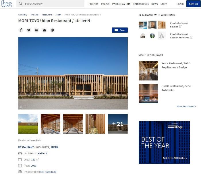 | 2023.12.26 | うどん屋「もり豊」海外の建築メディアに掲載されました。
